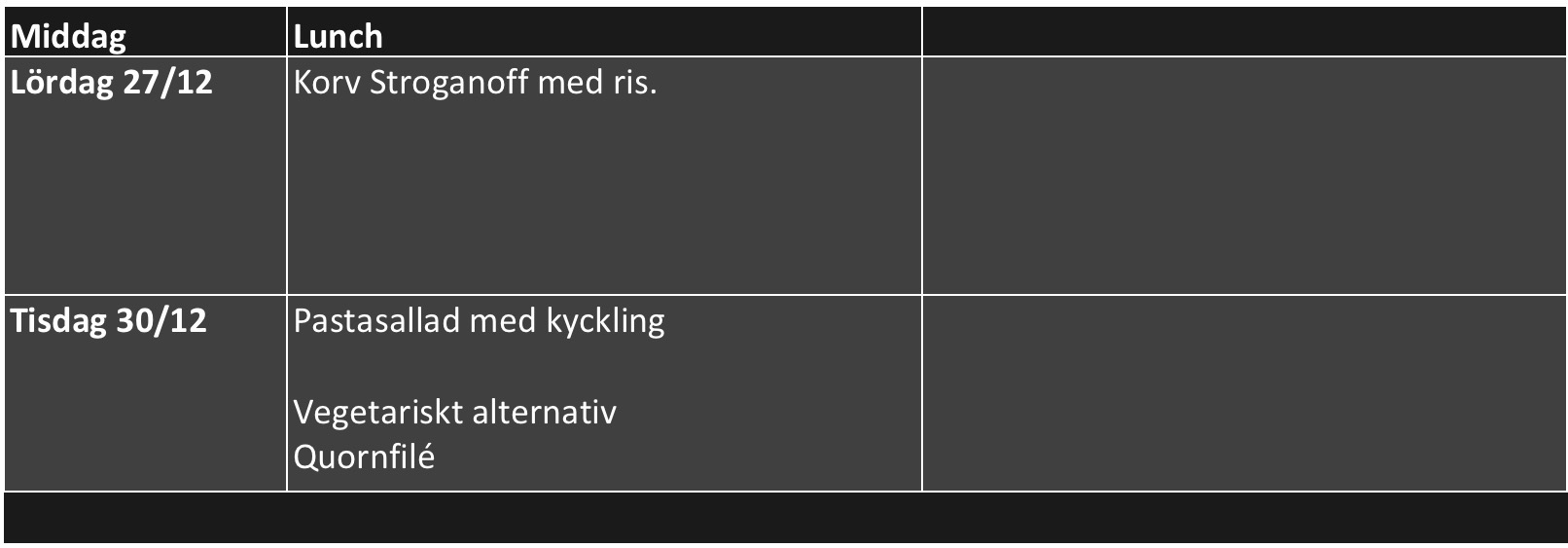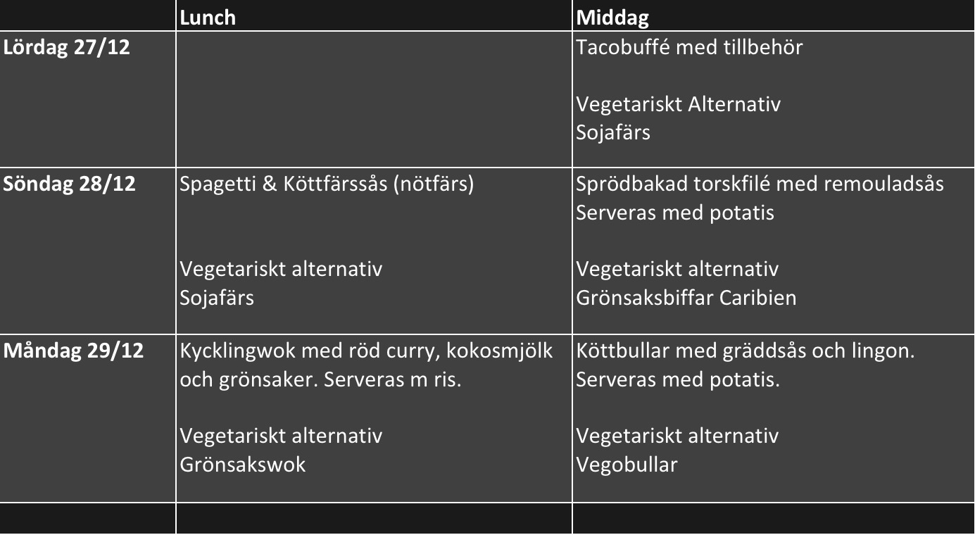Dessa måltider beställer separat på MyTeam senast den 12/12.